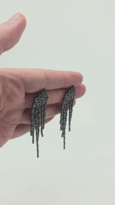 Cercei Lungi "Midnight Rain" din Inox Negru cu Cristale Zirconiu