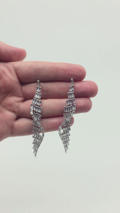 Cercei Lungi "Silver Cascade" din Inox Argintiu cu Cristale Zirconiu Albe